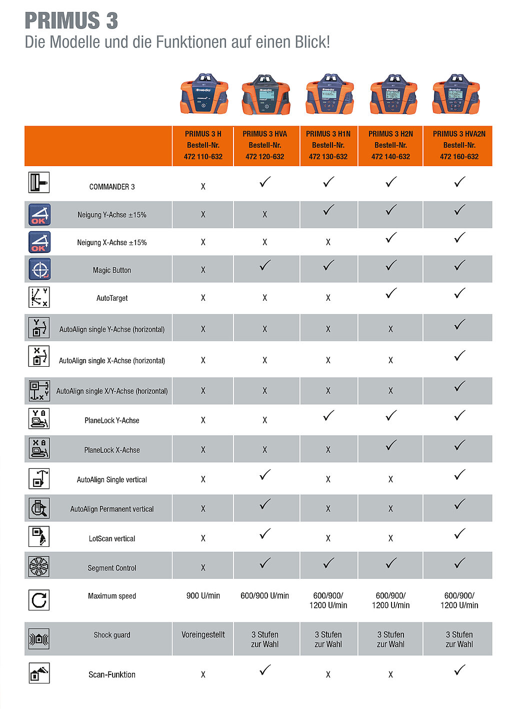 Herausragend ist der Neigungsbereich von ± 15% bei den Neigungslasermodellen PRIMUS 3 H1N, H2N und HVA2N.