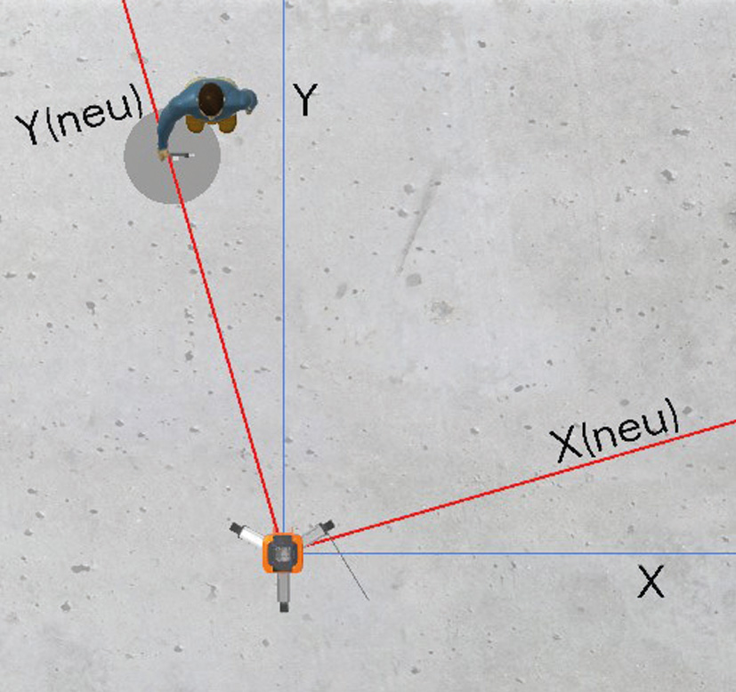 Die Funktion AutoTarget des PRIMUS 3 H2N und HVA2N richtet die Y-Neigungsachse des Lasers automatisch auf den COMMANDER 3 aus. Dabei wird rechnerisch das interne Koordinatensystem des Lasers