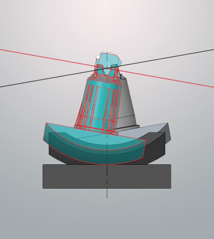 Die Mechanik des Lasers ist dabei so aufgebaut, dass sich der Drehpunkt der beiden Schwenkachsen des Baulasers im optischen Mittelpunkt des rotierenden Prismas befindet. Dies klingt kompliziert, hat aber den Vorteil, dass im Zweiachs-Neigungsbetrieb genauere Ergebnisse erzielt werden.