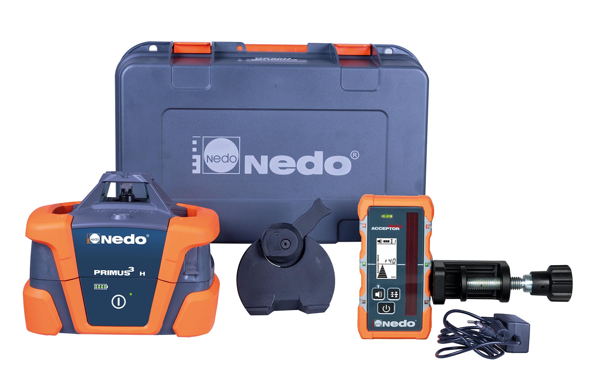 Rotationslaser PRIMUS 3 H inkl. Laserempfänger ACCEPTOR MAXX mit mm-Anzeige, Heavy-Duty Empfängerhalter, Quick-Fix 2, Akku, Ladegerät und Transportkoffer |