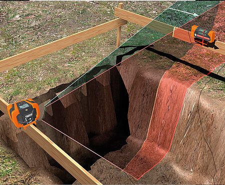 Der perfekte Laser für den Fassadenbau und den Schnurgerüsteinsatz.