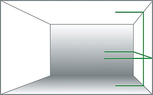Das gut sichtbare Laserkreuz an der Wand ermöglicht ein schnelles und genaues Nivellieren und