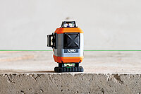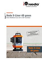 Für alle anderen Nivellieraufgaben steht die an der Gehäuseoberseite austretende horizontale 360° Laserlinie zur Verfügung. Zwei senkrechte, exakt rechtwinklig angeordnete 360° Laserlinien dienen zum Fluchten, Abtragen rechter Winkel und zum Loten. Die grünen Laserlinien sind besonders gut sichtbar und ermöglichen einen Arbeitsbereich von bis zu 50m ohne Laserempfänger. Die Horizontierung der Laserlinien erfolgt motorisch, mit Hilfe elektronischer Sensoren und elektrischer Servomotoren. Dadurch ist der neue X-Liner 4D green besonders zuverlässig und robust.